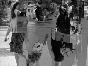 The photographs are superimposed and stitched together on shared landmarks that feature in the background; the harbour, the theater square, the city center. This way specific places in Sanary are reconstructed. In the foreground a parade appears of superimposed people who have occupied the same space at various points in time. Their common context creates similarities in terms of body language, attitude and dress code. A visual probing of collective habits of strolling on one’s own along the harbor.