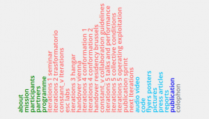The Iterations research project is initiated by four organisations who have a clear affinity with open approaches towards art, technology and society, and who feel a shared necessity to research the conditions in which artists who use technology work. Iterations consisted of a series of artist residencies, exhibitions, reflection meetings and exchanges that took place between 2017 and 2020. Artists and cultural practitioners were welcomed in situations to experiment with and reflect on what the future of collectivity, sharing and working together in digital and networked contexts can look like.